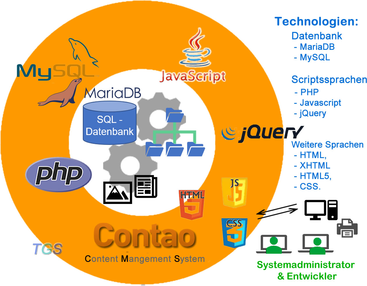 - Der Kernel von Contao läuft auf einer SQL-Datenbank (MySQL, MariaDB)