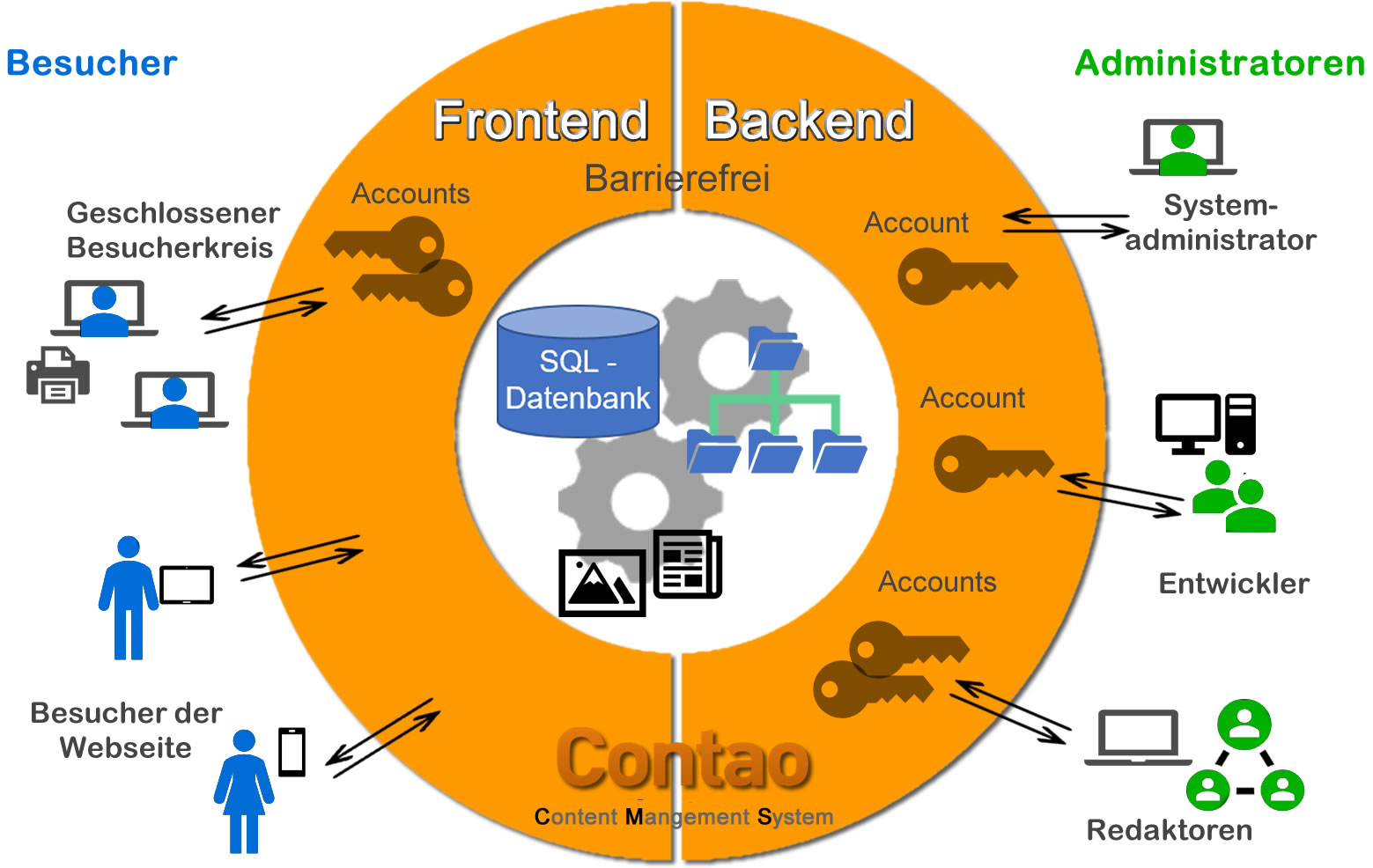 Die Zugangs- & Bearbeitungsebenen von Contao